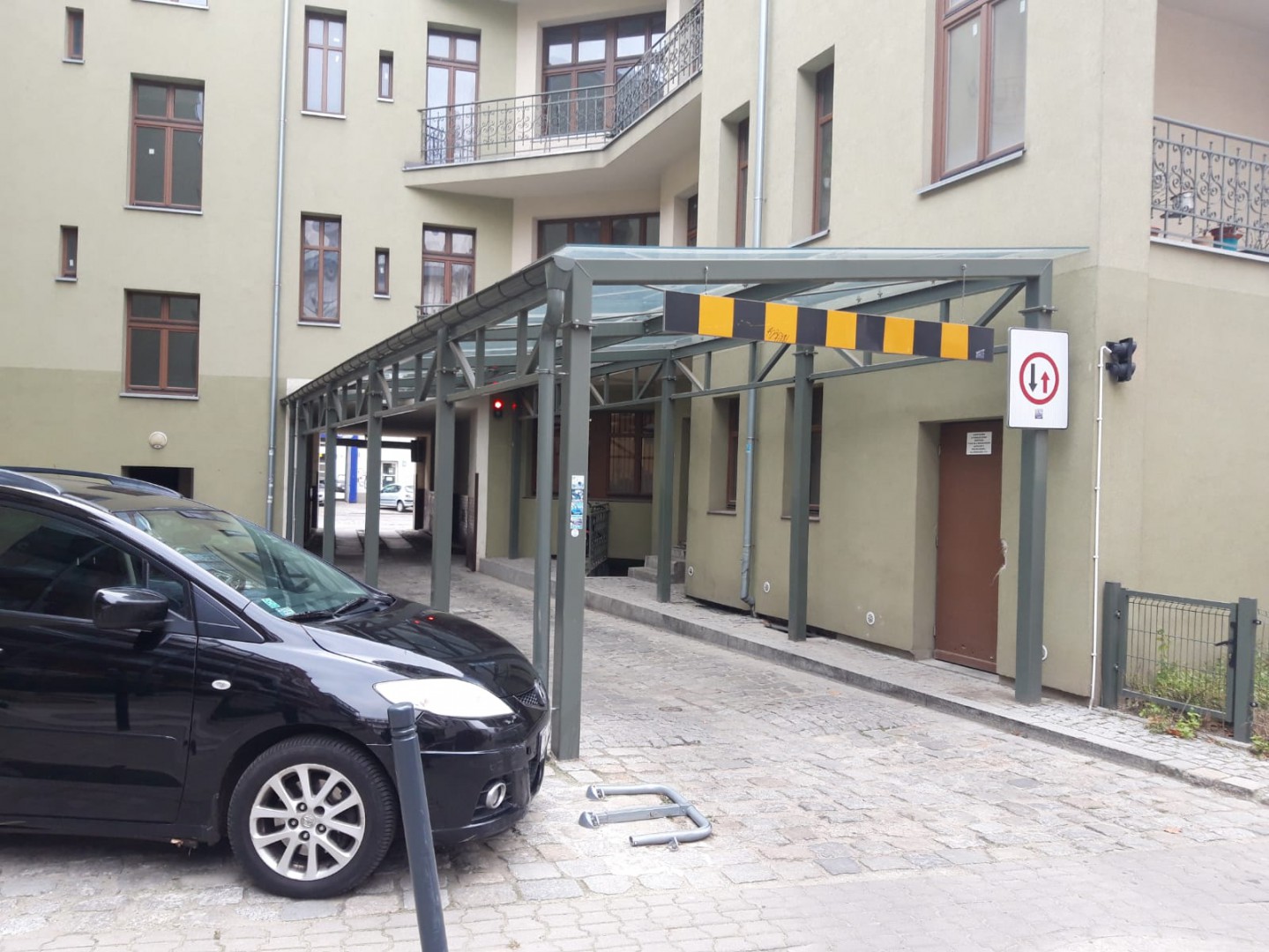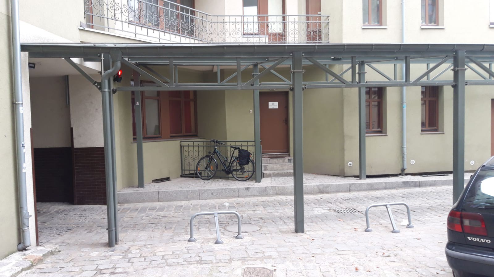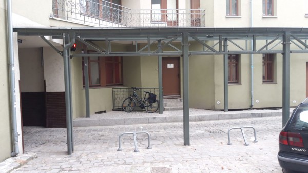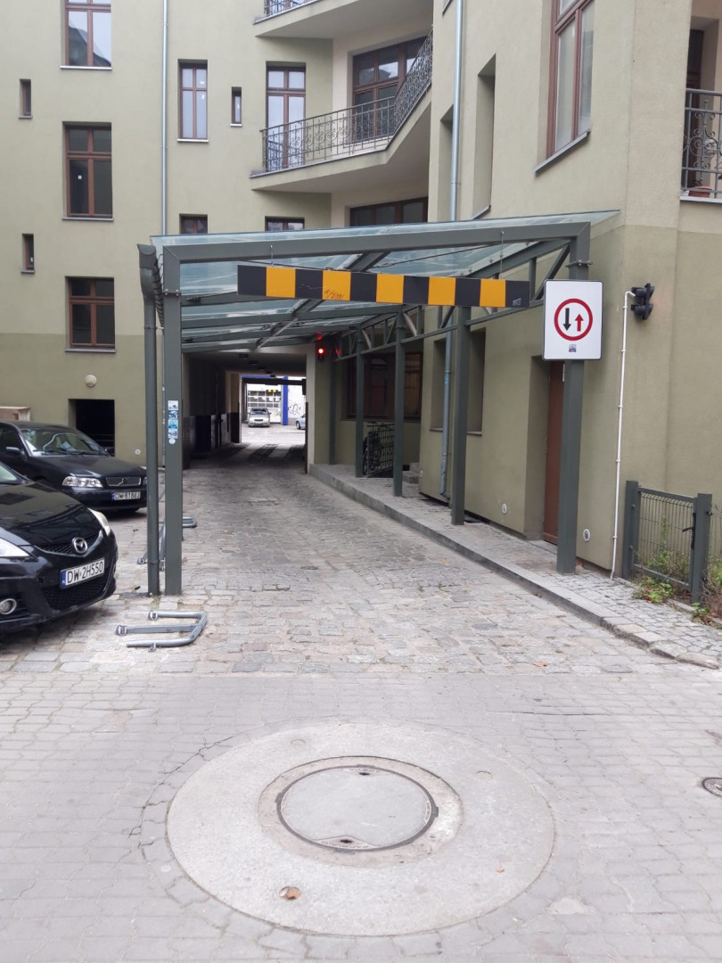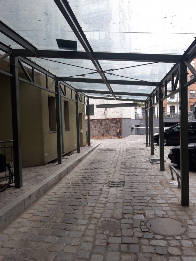 budowa wiaty przejazdowej o konstrukcji stalowej z zadaszeniem szklanym, budowa drogi z kostki granitowej, remont przejazdu pod istniejącą kamienicą, budowa infrastruktury przejazdowej wraz z instalacja elektryczną i niskoprądową