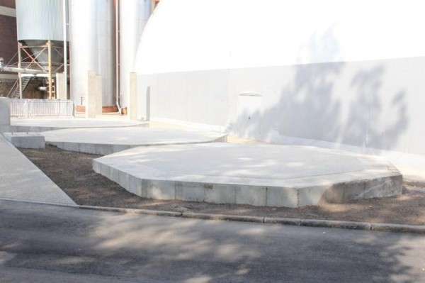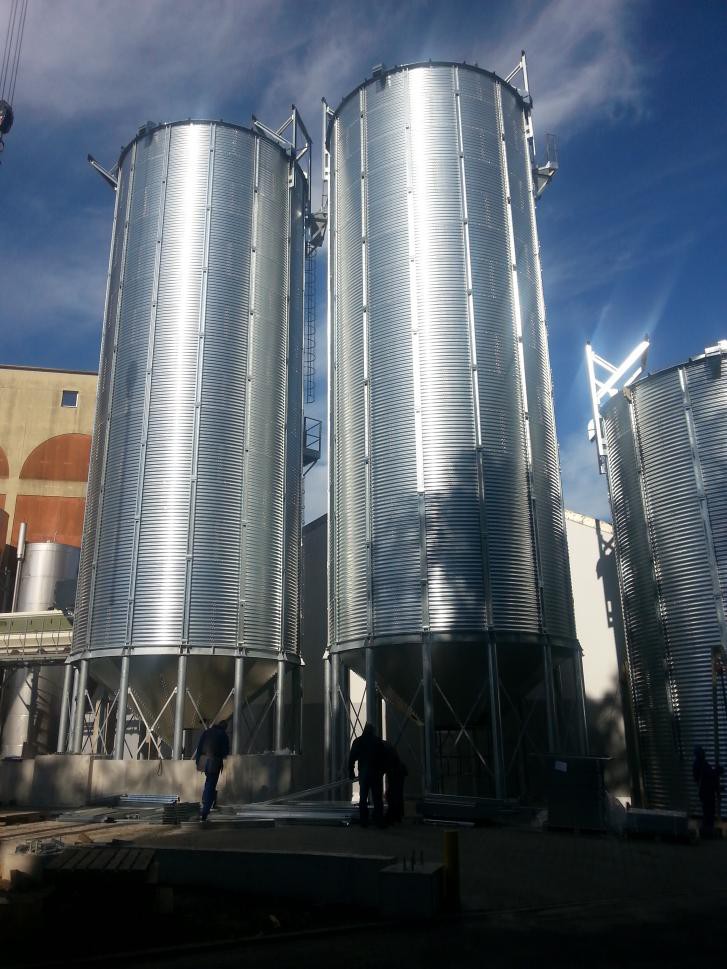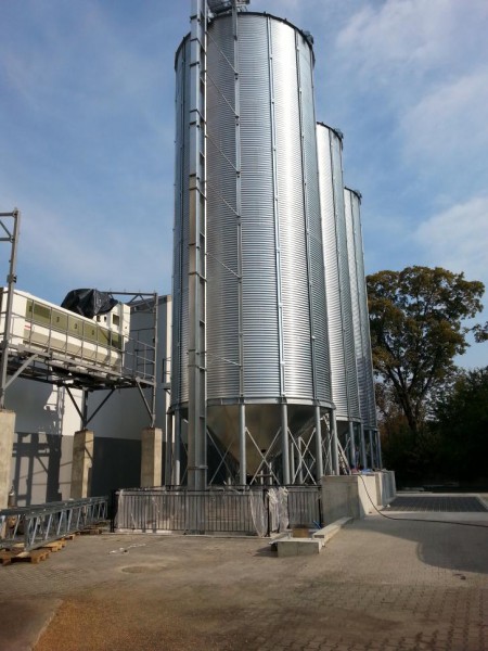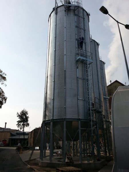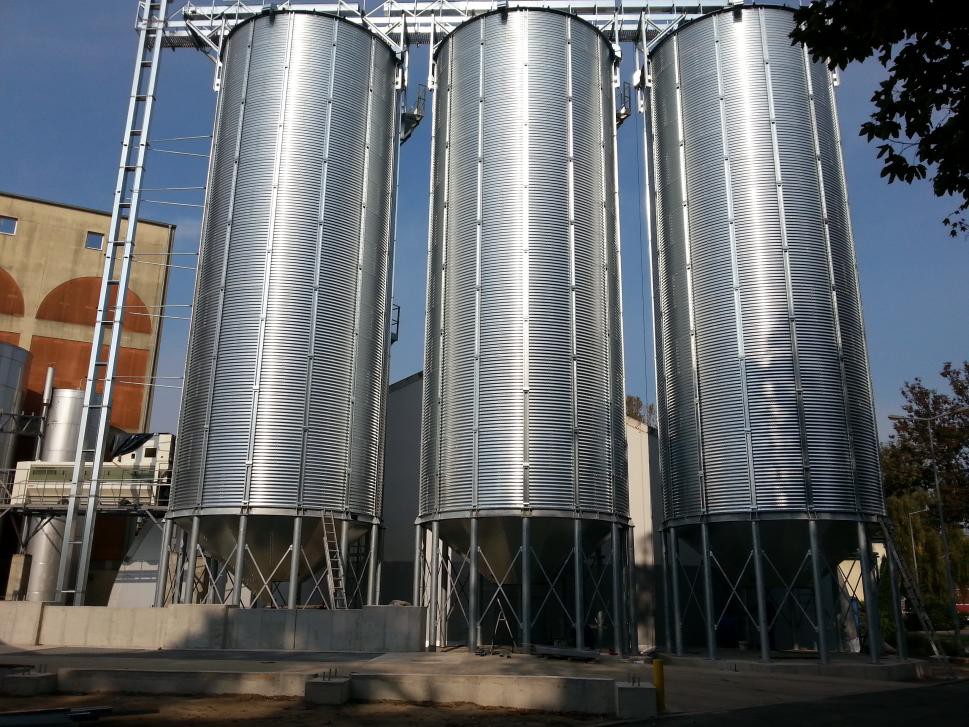 Fundamenty pośrednie z zastosowaniem geomembrany pod wysokie silosy zbożowe z technologicznymi zbiornikami podziemnymi i fundamentami pod wagę najazdową i robotami drogowymi.